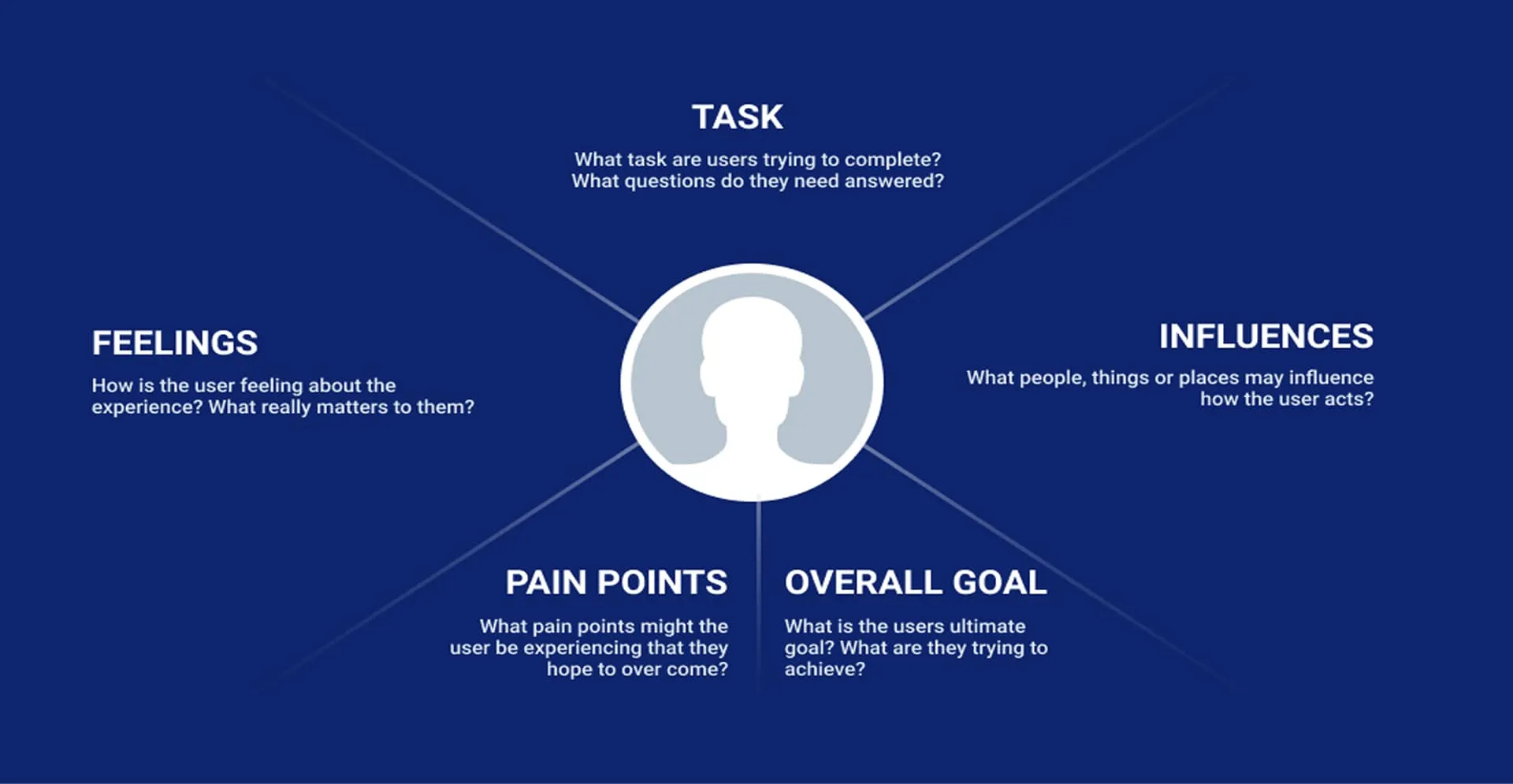 - Goals: What is the ultimate goal of the user and what is he trying to achieve?