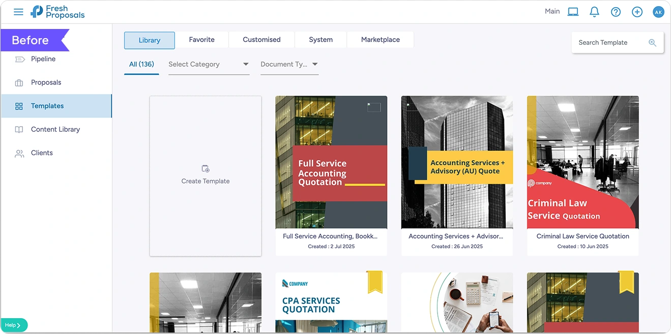 Fresh Proposal is a proposal-creation platform for business owners, finance, and sales teams to build and send quotations quickly.
